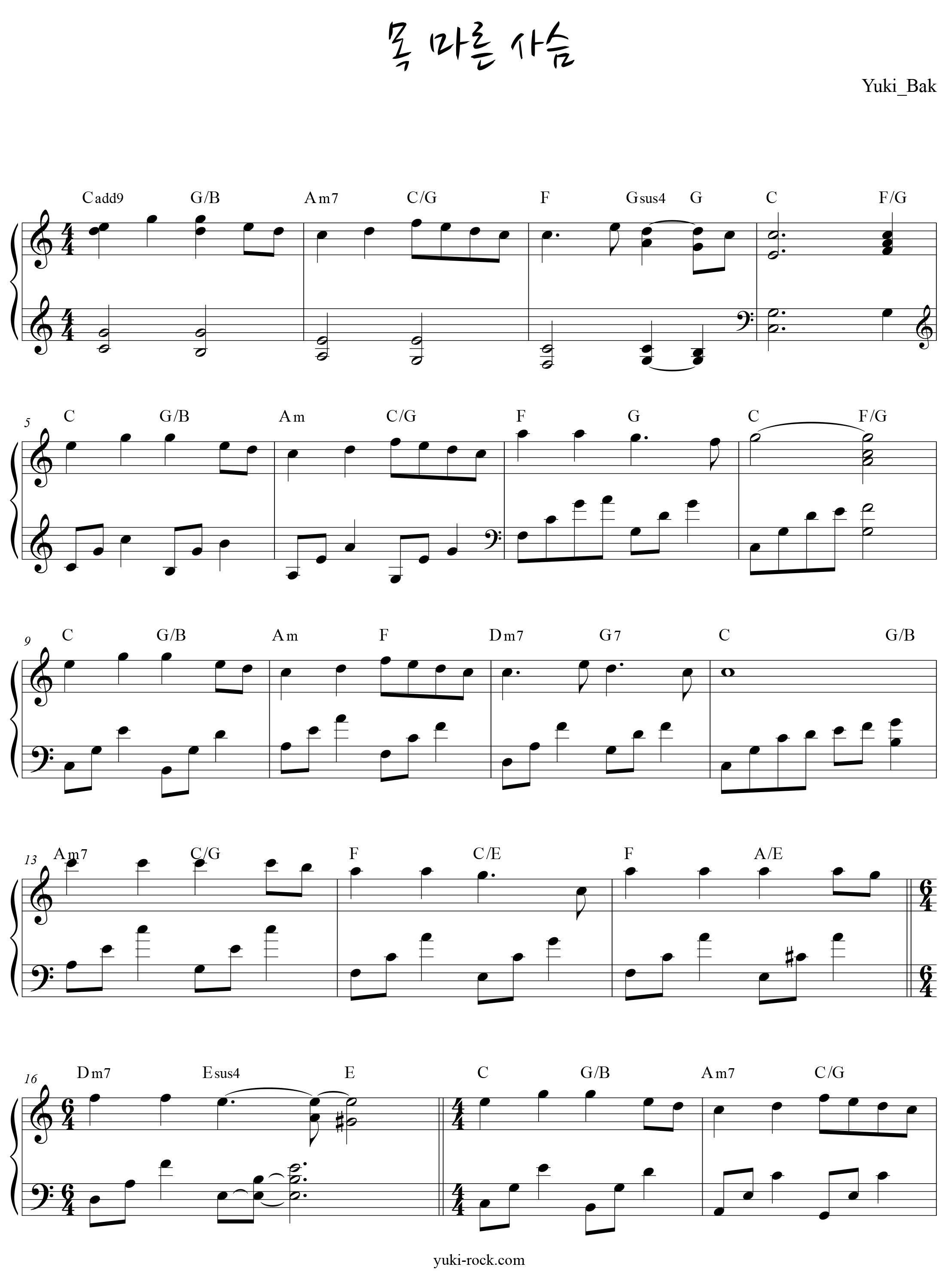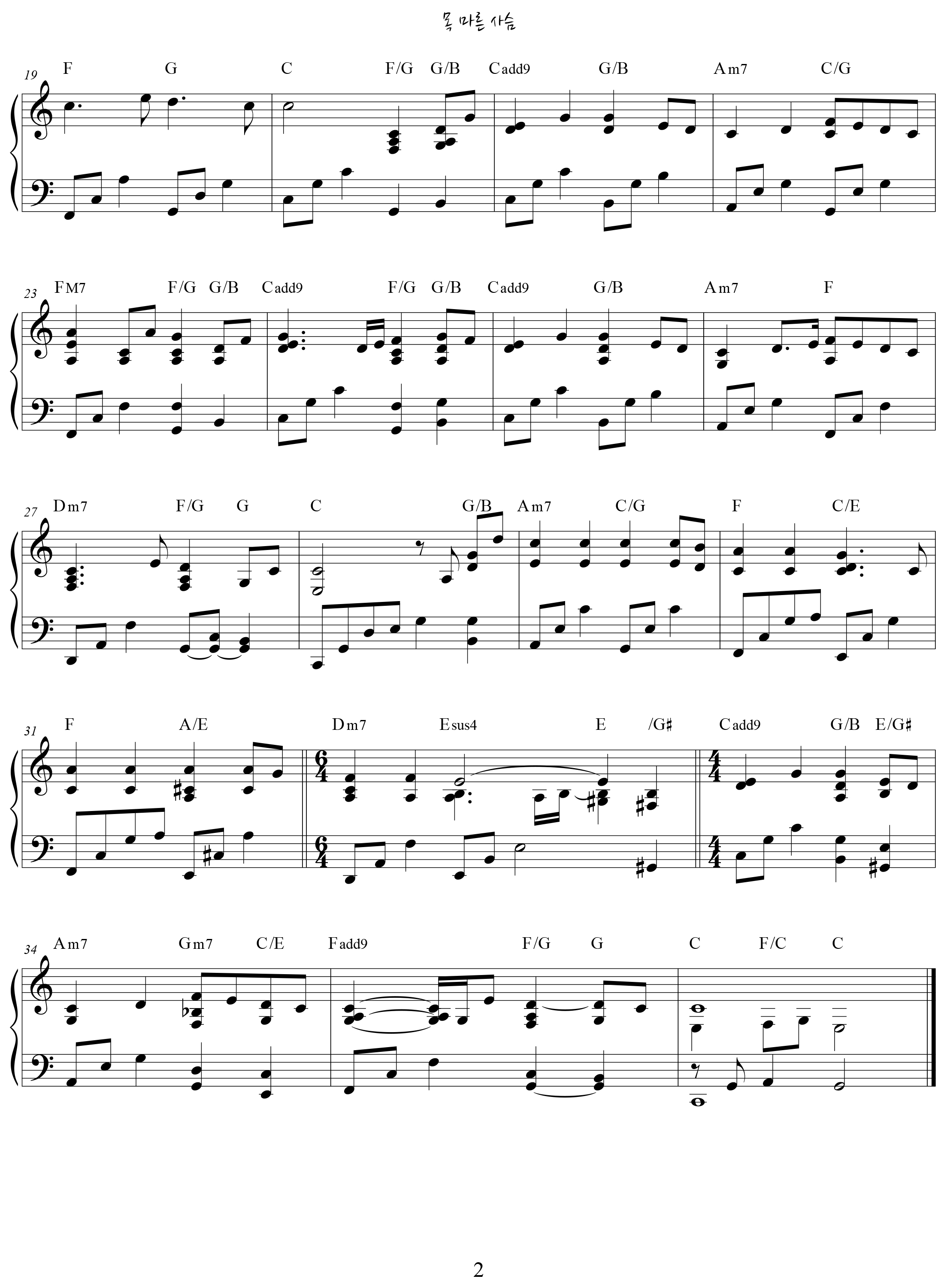요 근래엔 가사와 피아노 연주만 올렸는데 악보도 첨부해 봅니다.
