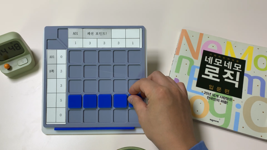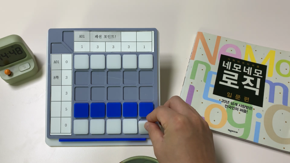 노노그램 퍼즐 보드에서는 하얀색 알을 두면